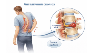 Паралельно організм вмикає захисні механізми, йде процес адаптації скелета до пошкодження, перебудовується м’язовий тонус, з’являється м’язово-тонічне напруження, а разом із тим і болі. Може навіть з’явитися викривлення хребта, так званий анталгічний сколіоз — теж захисно-пристосувальна реакція, необхідна для того, щоб захистити пошкоджений сегмент від ще більшого пошкодження.