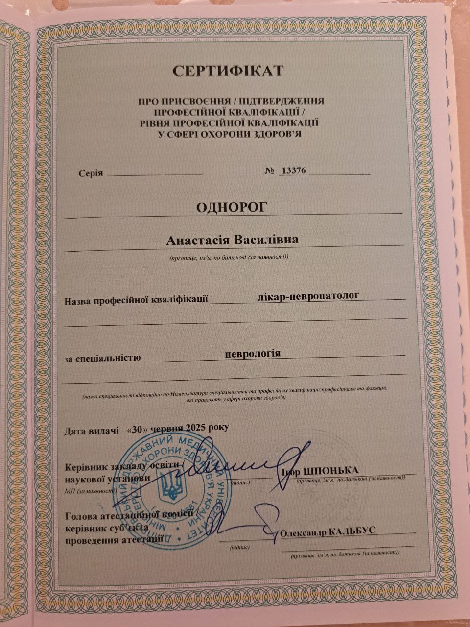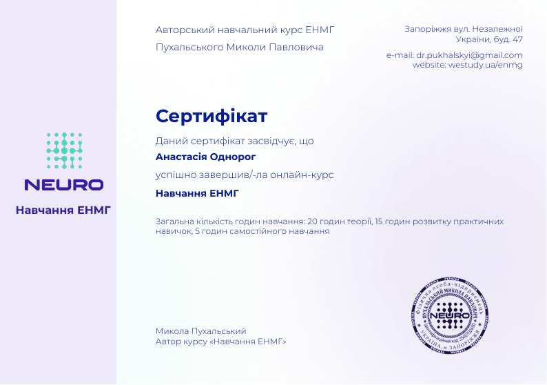Проводить функціональну діагностику периферичної нервової системи методом ЕНМГ. Спеціалізується на оцінці стану нервово-м’язової передачі, виявленні уражень корінців, нервів, сплетінь і м’язів. Працює на сучасному обладнанні з дотриманням міжнародних стандартів діагностики.