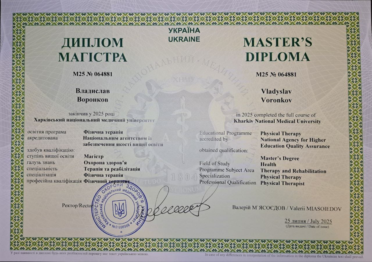 Харківський Національний Медичний університет, IV медичний факультет, кафедра спортивної медицини. Магістр